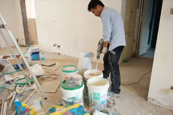 廠家在廠內(nèi)就已經(jīng)把各種粉質(zhì)類和起粘接物質(zhì)(乳膠粉)及一些起施工特性的物質(zhì)混合好,做成干粉質(zhì)的產(chǎn)品,施工的時(shí)候直接加水?dāng)嚢杓纯?,?dāng)然也有一些工人會(huì)根據(jù)情況現(xiàn)場(chǎng)在加入一些熟膠粉,纖維素或膠水等。