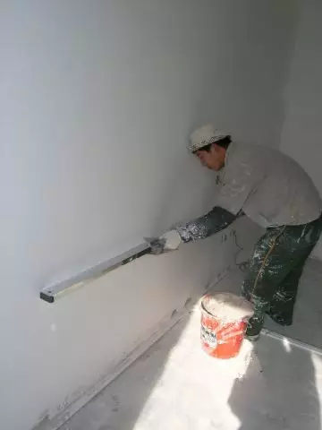 用膩?zhàn)幽z水現(xiàn)場(chǎng)兌滑石粉(雙飛粉),加入一些輔助材料如水泥、纖維素、熟膠粉等現(xiàn)場(chǎng)調(diào)配而成。