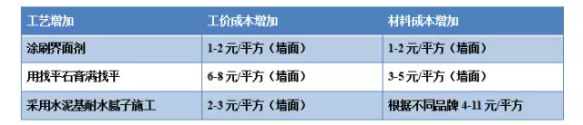 那么,剛才敘述的那些材料或工藝很明顯按重慶目前絕大多數(shù)裝飾公司的報(bào)價(jià)是做不出來(lái)的,那么要按以上敘述的做,我們的顧客需要增加多少成本???下面這張表為一個(gè)參考表格,同時(shí),我是針對(duì)裝飾公司運(yùn)營(yíng)所做的表格,包含了一些費(fèi)用和利潤(rùn),如果是清包工工人工價(jià)基本差距不大,靠底線就好,材料可以打個(gè)8折左右算費(fèi)用,注意,這個(gè)是在現(xiàn)有工藝收費(fèi)上增加的,并不是這個(gè)工序就是收費(fèi)這么多: