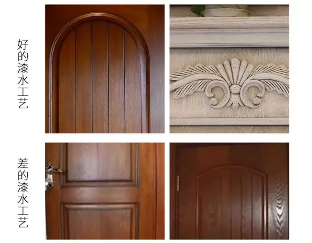 漆水完全不一樣,我們是嚴(yán)格按照美式涂裝的做法:木磨--灰磨--刷封固底漆--噴底色--噴底漆--油磨--搽格里斯--打毛刷--噴底漆--油磨--網(wǎng)紗--面修色漆--面漆,而市場上的貼板門,大多數(shù)的漆水只做了二底一面,甚至還有做一底一面的,少做一次,材料少一次,工錢少一次。漆工材料及工錢高:60-120元。